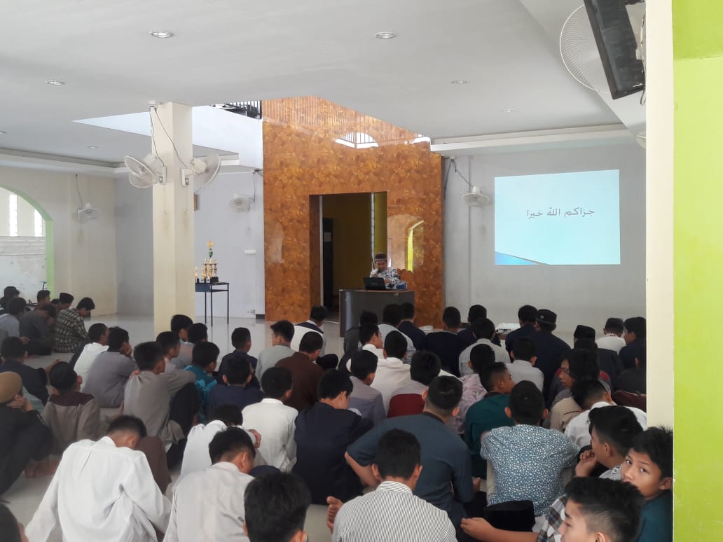 Pesan berikutnya disampaikan oleh Ust Muhammad Thoha, Lc yang mengajar mapel fiqih. Beliau mengingatkan siswa untuk tidak euforia dengan prestasi yang diraih. Itu semua sudah termaktub di lauhil mahfudz dan tugas kita hanya ikhtiyar dan berusaha.