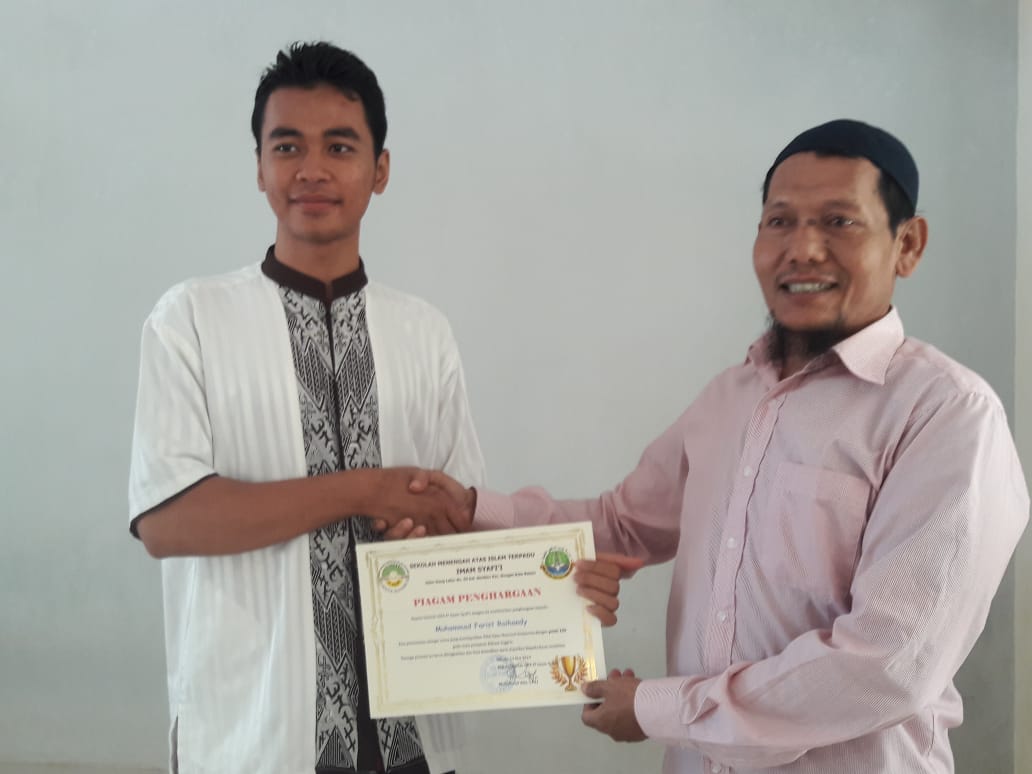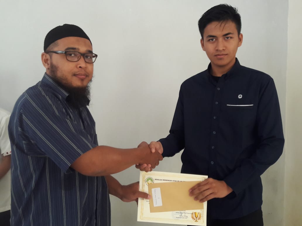 Kembali komite SMA IT Imam Syafi'i memberikan apresiasi dan reward. Kali ini yang berbahagia mendapatkannya adalah siswa kelas XII yang mendapat nilai tertinggi pada setiap mapel UN 2019. Tidak hanya itu, hal yang sama juga diberikan pada peringkat 10 besar dan siswa yang mendapat nilai sempurna. Pada UN 2019 ini siswa atas nama Muhammad Farist Raihandy mendapat nilai sempurna dengan perolehan nilai 100 pada mapel Bahasa Inggris.