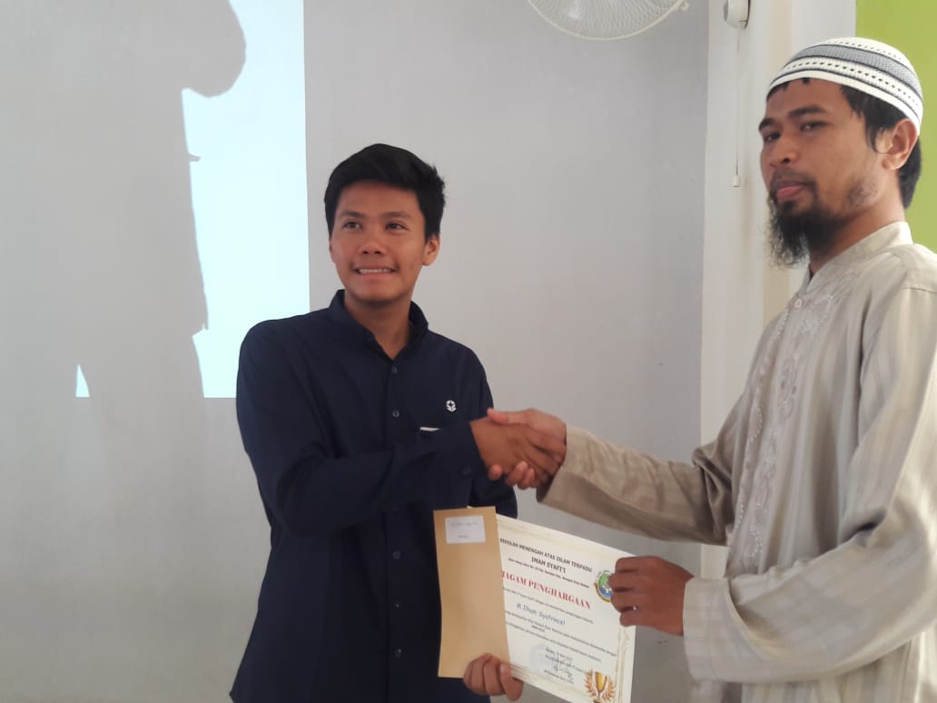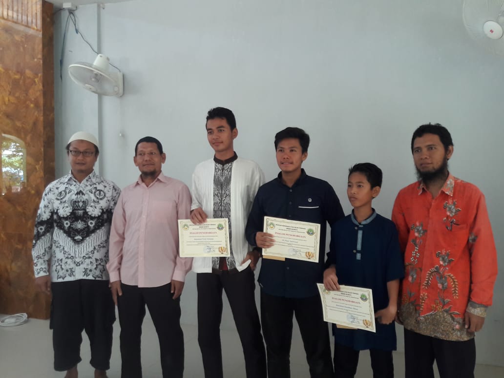 Kategori siswa tertinggi pada mapel Kimia (75,0 point) diraih oleh ananda Muhammad Ramadhani Ikhsan yang dalam kesempatan itu diterima oleh adiknya Yusuf Fisabilillah yang masih duduk dikelas VII