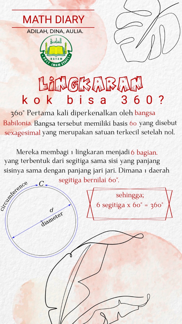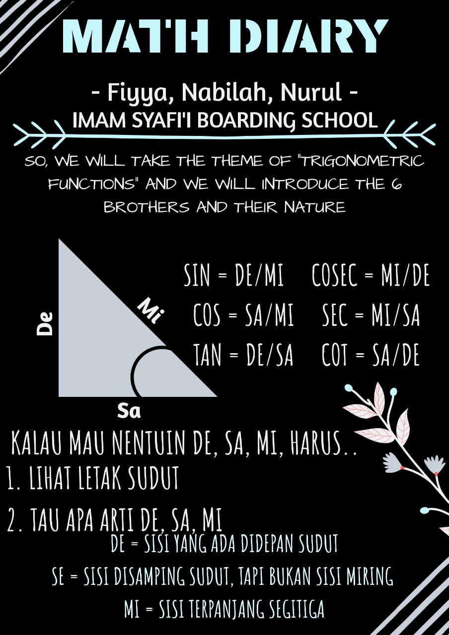 Sebelumnya, Math Diary ini adalah proyek antara guru mata pelajaran matematika; Ustz Septia Nur, S.Pd bersama santriwati kelas X Aisyah, yang dibuat sebelum masa pembelajaran daring, dan hanya berupa tulisan tangan di atas kertas, yang rencananya akan diperbanyak dan dibagikan kepada seluruh santriwati SMP / SMA IT Imam Syafi'i, bekerja sama dengan pihak perpustakaan dan pengurus mading.
