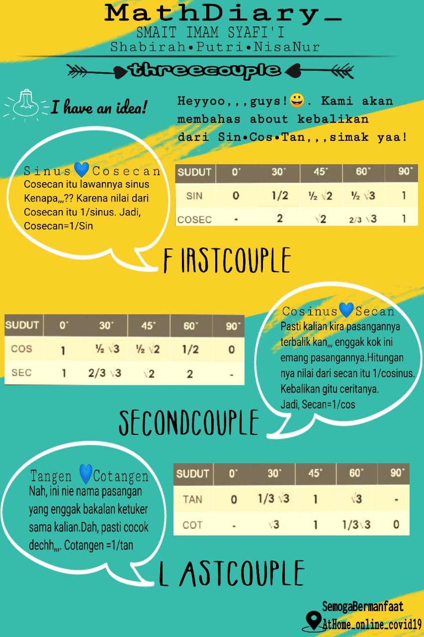Berhubung proses pembelajaran beralih ke daring, maka muncul kembali ide untuk membuatkan dalam bentuk desai e-flayer. Dan alhamdulillah, atas izin Allah, Math Diary season 1 ini pun berhasil diterbitkan.
